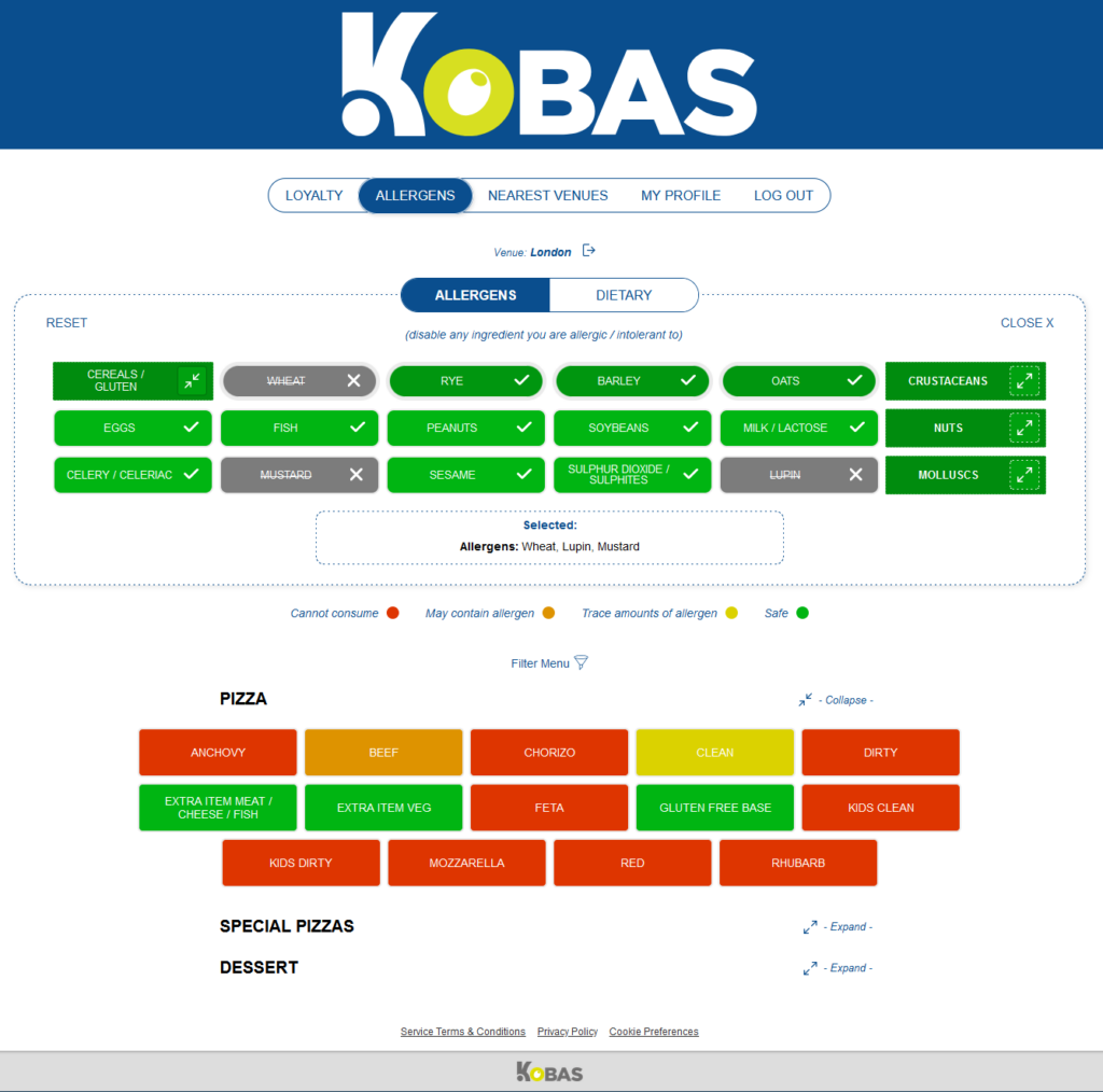 As you may already know, Kobas allows you to store allergen and dietary information for each ingredient and till item (PLU) you sell. Now, with the arrival of the CIC, Kobas puts this information directly into your customers’ hands in a straight-forward and really useful way.