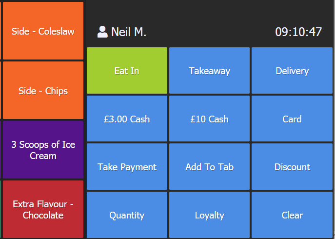 Then at the point of sale, it is important to be certain whether the customer plans to eat in, take away, or if the EPoS unit is taking an order for delivery. Kobas tills have always had a consumption mode picker permanently on-screen above the payment buttons which allow the EPoS operator to change mode at any time.