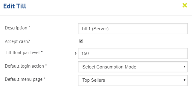 To set this up, head on over to Kobas Cloud, navigate to Venues -> Venue Details and hit the Tills tab. There, when adding a new till or editing an existing till, set the “Default login action” to “Select Consumption Mode”.