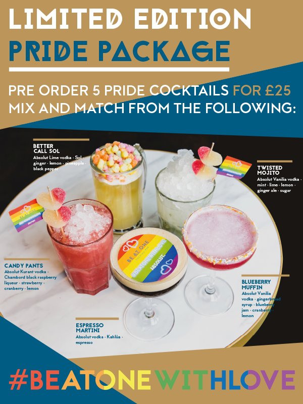 For those attending the parade, Kobas client Be At One on Greek Street is offering a limited edition Pride Package this weekend. You can pre-order and mix and match 5 Pride Cocktails for £25. Be At One bars are known for their incredible cocktails and we have no doubt these ones are no exception. From twisted mojitos and espresso martinis, here’s what you can expect.