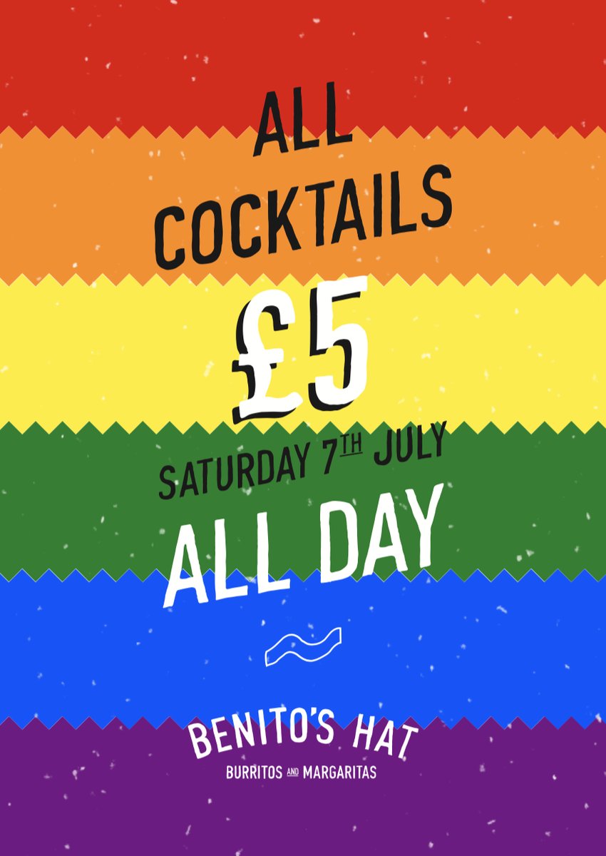 Another one of our clients, Benito’s Hat, is offering £5 cocktails all day on Saturday in their Covent Garden and Oxford Circus locations! Stop by and grab a refresher – it’s going to be a long day!
