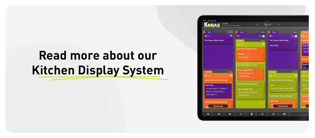 Now in 2023, we are excited to announce the launch of KDS, which adds an important new dimension to the Kobas In-Venue offering. KDS traditionally stands for Kitchen Display System, and that’s certainly a part of our new product. Yet we believe its use extends beyond the kitchen into drink preparation stations and beyond, so you’ll also see us refer to it as the Kobas Display System. No matter how you look at it, KDS brings important clarity and control to food and drink preparation areas, far exceeding what’s possible with traditional printers and paperwork dockets.