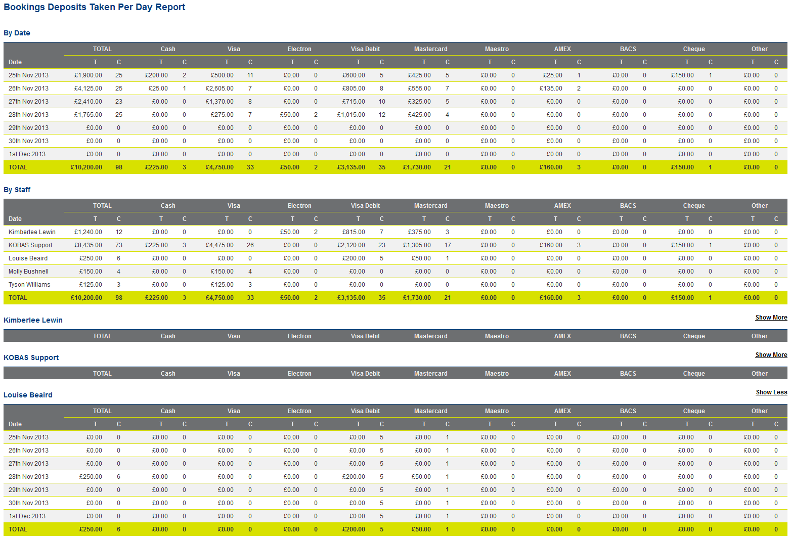 At this time of year we see an awful lot of party bookings flowing through the Kobas system, so we’ve added a bunch of improvements and reports to help out here.