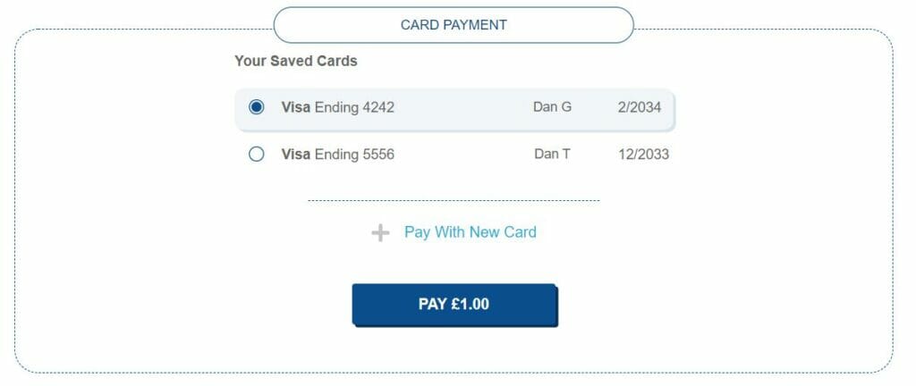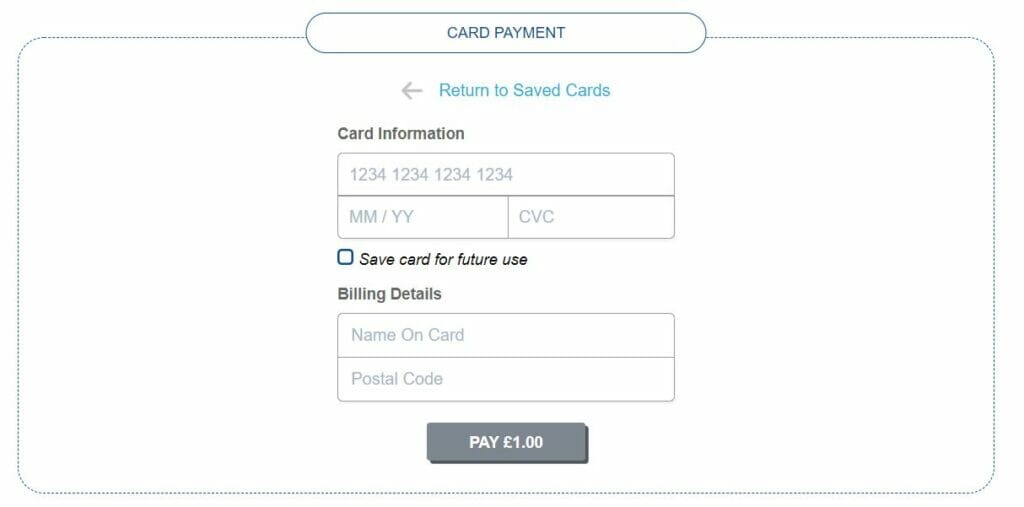 One simple checkbox gives returning customers the option to save the card they are using. This card will be stored securely in Stripe. Once saved, the card can simply be selected from a list and Stripe is able to process the payment from the same method immediately.