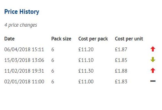 Only a tiny change, but one that will definitely come in handy; any price movement will be accompanied with an arrow indicating its direction. Hopefully you will see more green than red!