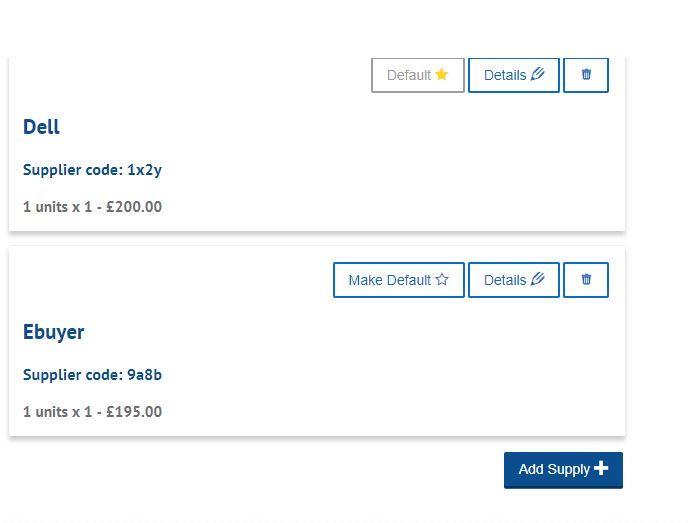 The screenshot above shows an ingredient with two separate “supplies”; each coming from a different supplier with a different price.