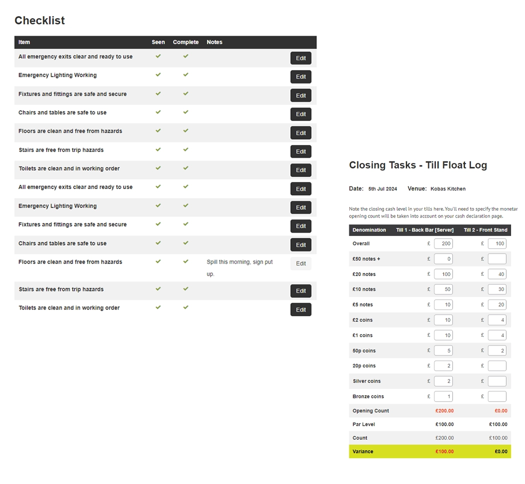 It’s crucial for management at club venues to stay on top of tasks in a timely and compliant manner. Your Kobas system comes with a set of customisable opening, in-shift and closing tasks, ensuring that your workforce has everything they need to complete key functions in the most effective way.