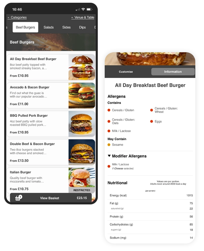 Items show clear allergen, dietary and nutritional profiles.
