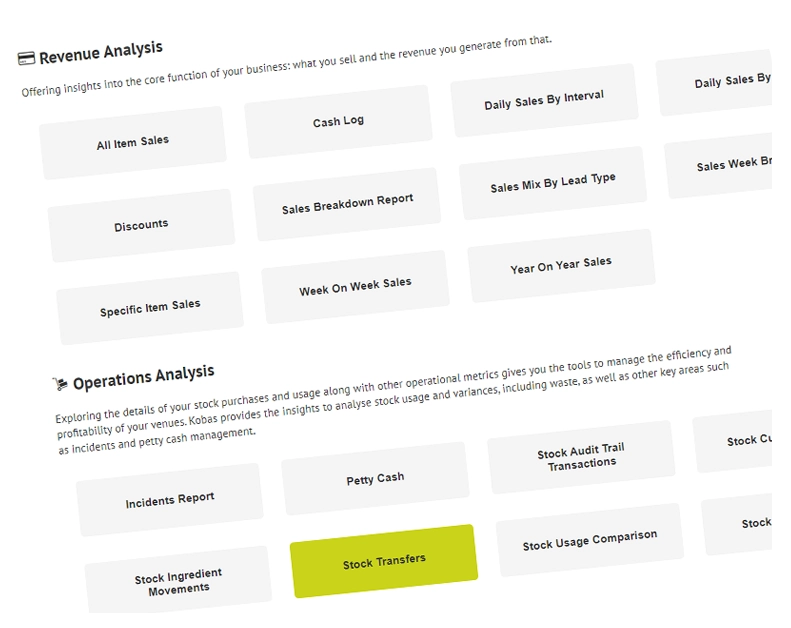 Imagine ordering, transferring and managing stock in minutes. How? Well, when you choose the Kobas hospitality system, you gain access to all management tools including our comprehensive hospitality stock control software. This means embracing stress-free stock processes by utilising a platform built with intuitive features at the forefront, ensuring your business remains efficient, organised, and profitable.